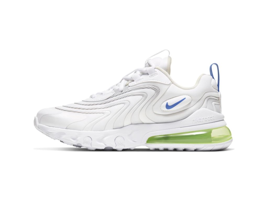Dětská volnočasová obuv značky Nike. Výrazný tvar Nike Air pozvedá řadu Nike Air Max 270 React na novou úroveň a pěnový mezipodešev Nike React jí zajišťuje jedinečné tlumení. Boty poskytují kombinaci celodenního pohodlí a nepřekonatelného stylu. Technologie Nike React využívá odlehčenou odolnou pěnu, která skvěle pruží při každém kroku v kombinaci se systémem AIR, který perfektně tlumí.